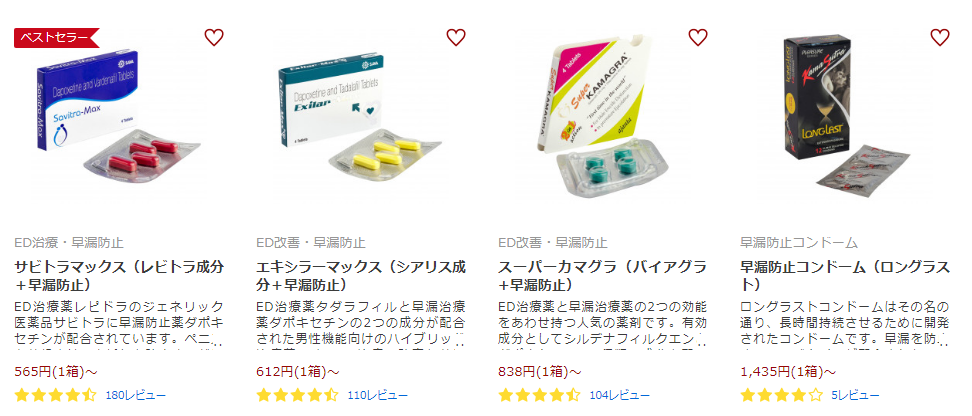 国内の成人男性の3.5人に1人は悩んでいると言われ、パートナーにもなかなか打ち明けづらい早漏。有効成分ダポキセチンを配合し、早漏のみに効果的な予防薬、2つの成分配合で早漏とED(勃起不全)の両方を改善する総合薬、早漏防止サプリメントやスプレーなど豊富に取り扱います。